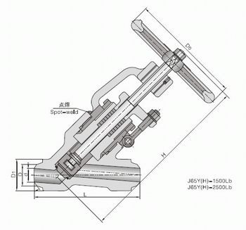 J65Y自密封式截止閥外形結(jié)構(gòu)圖: