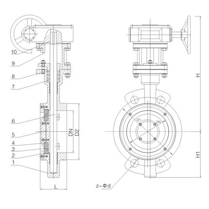 三偏心陶瓷蝶閥外形結(jié)構(gòu)圖: