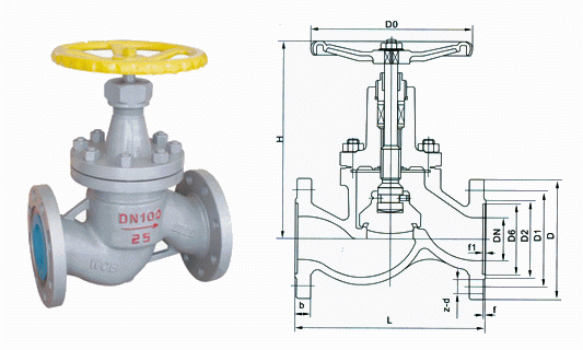 法蘭氨用截止閥外形結(jié)構(gòu)圖: