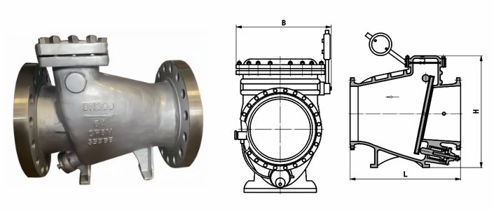 高壓微阻緩閉止回閥外形結(jié)構(gòu)圖: