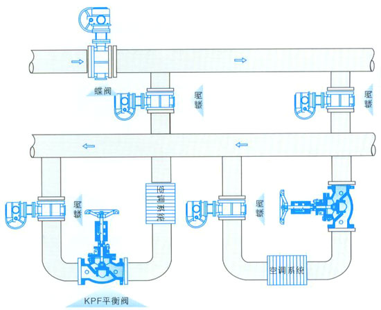 KPF大連式平衡閥是一種具有特殊功能的調(diào)節(jié)型閥門,具有良好的流量特性,能夠合理地分配流量,實(shí)現(xiàn)流量定量,可以有效地解決供熱(空調(diào))系統(tǒng)中存在的室溫冷熱不均問題。由于該閥門設(shè)有開啟度指示、開度鎖定裝置及用于流量測定的測壓小閥,所以只要在各支路及用戶入口裝上適當(dāng)規(guī)格的平衡閥,并用專用智能儀表進(jìn)行一次性調(diào)試后鎖定,將系統(tǒng)的總水量控制在合理的范圍內(nèi),從而克服了“大流量,小溫差”的不合理現(xiàn)象。