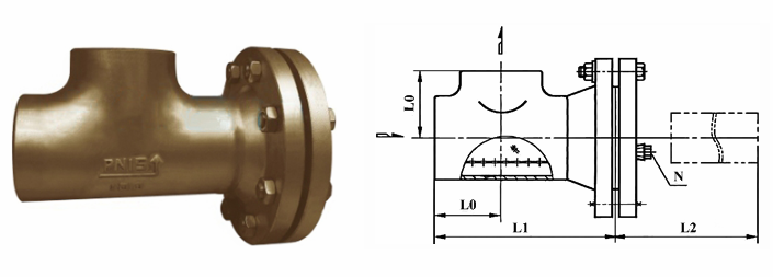 鋁青銅T型過濾器外形結(jié)構(gòu)圖: