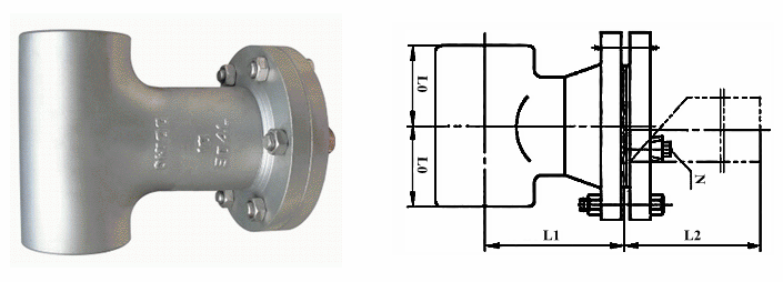 雙相鋼T型過濾器法蘭通過氬弧焊工藝焊裝在三通管的管口上,濾芯擋圈焊置于三通管件的直通管形內部,濾筒一端放置在濾芯擋圈凹槽內,另一端用法蘭蓋壓緊固定,當流體進入置有一定規(guī)格濾網的濾筒后,其雜質被阻擋,而清潔的濾液則由出口排出,當需要清洗時,只要將可拆卸的濾筒取出,處理后重新裝入即可,因此,使用維護極為方便。本產品有直流式、正折流式和反折流式三種,可根據實際配管需要選型,一般直流式宜安裝在直管段部位,正折流式和反折流式宜安裝在有90°流向變化處,以節(jié)省彎頭。