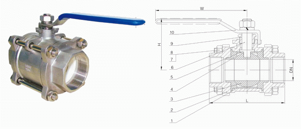 內(nèi)螺紋陶瓷球閥外形結(jié)構(gòu)圖:
