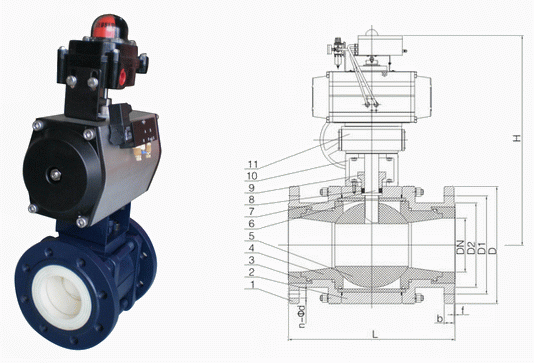 氣動耐磨陶瓷球閥外形結(jié)構(gòu)圖: