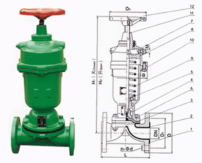 3、視膠隔膜閥的閥體內(nèi)腔表面視復(fù)有廳供選擇的多種橡膠。因此具有優(yōu)越的耐腐蝕的特點(diǎn)。