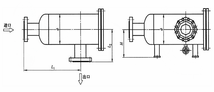 臥式過濾器是一種臥式安裝適用于介質為液體的管道用籃式過濾器,由封頭和筒體組成殼體,其左側和正面方向分別設有流體進口和出口,殼體內(nèi)置有有利于機械雜質分離沉降的濾芯,并經(jīng)側蓋和殼體右側端蓋法蘭通過緊固螺母壓緊固定,工作時,待處理液體從左側進液口進入過濾器內(nèi),經(jīng)過置有一定規(guī)格濾網(wǎng)的濾筒后將固體雜質濾除掉,從出液口流出即可,當需要清洗時,只要將可拆卸的側蓋打開,把濾芯從筒體內(nèi)抽出,處理后重新裝入即可,因此,使用維護極為方便。