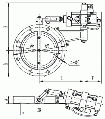 GIQ型氣動(dòng)高真空蝶閥外形結(jié)構(gòu)圖: