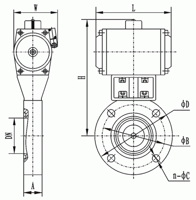 GIQ-AB型氣動高真空蝶閥外形結(jié)構(gòu)圖: