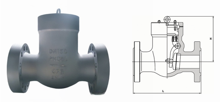 高壓止回閥是一種由閥體、閥座、閥瓣、搖桿、密封環(huán)及閥蓋等零件組成的閥瓣通過搖桿繞體腔內(nèi)閥軸作旋轉(zhuǎn)運動的高溫高壓自密封式止回閥,其一般應(yīng)用于火力發(fā)電廠高溫高壓介質(zhì)及流速和壓力較平穩(wěn)的大口徑管道系統(tǒng)中。該閥依靠介質(zhì)的流動開關(guān)閥瓣,使介質(zhì)單方向流動,防止介質(zhì)倒流,閥瓣在介質(zhì)流動推力的作用下旋轉(zhuǎn)開啟,在沒有介質(zhì)流動的情況下,閥瓣通常緊靠閥座形成密封,本產(chǎn)品啟閉速度快,壓力高,口徑大,介質(zhì)流通順利,流體阻力小。