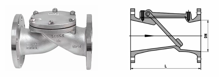不銹鋼橡膠瓣止回閥外形結(jié)構(gòu)圖: