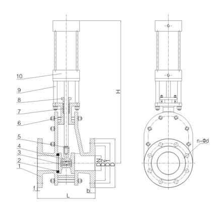氣動陶瓷出料閥外形結(jié)構(gòu)圖: