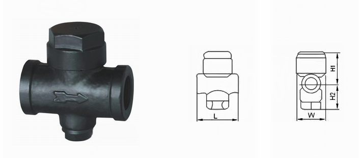 熱動力圓盤蒸汽疏水閥外形尺寸表: