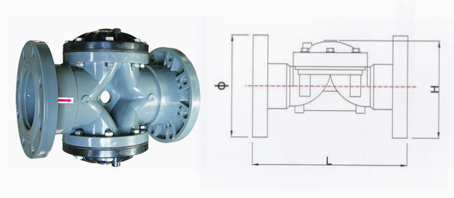 V型隔膜閥外形結(jié)構(gòu)圖: