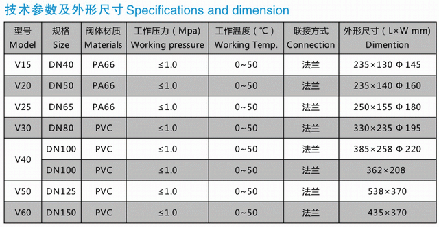 V型隔膜閥連接尺寸: