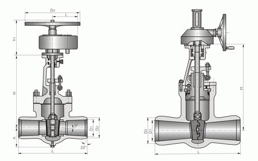 Z560Y傘齒輪焊接閘閥外形結(jié)構(gòu)圖: