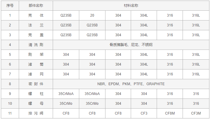 F型全自動清洗過濾器技術(shù)參數(shù)表: