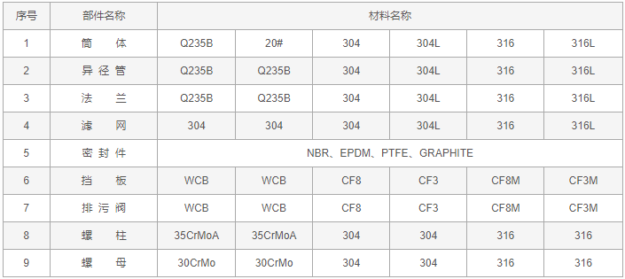 全自動(dòng)反沖洗排污過濾器零件材料表:
