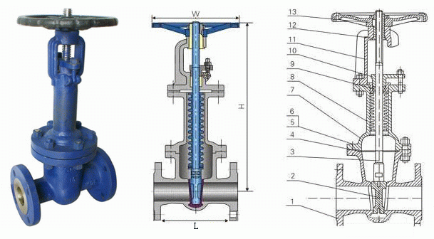 德標波紋管閘閥外形結(jié)構(gòu)圖: