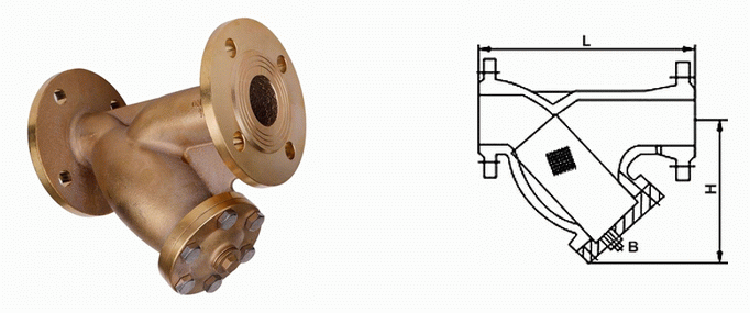青銅Y型過濾器外形結(jié)構圖:
