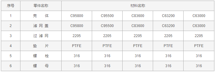 青銅Y型過濾器零件材料: