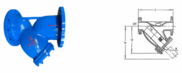碳鋼Y型過濾器外形結(jié)構(gòu)圖: