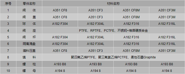 氣動(dòng)鍛鋼低溫球閥零件材料: