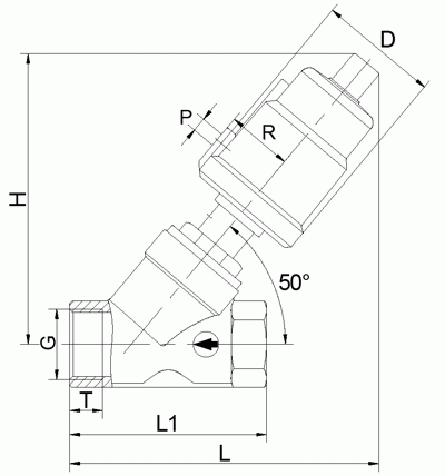 全不銹鋼螺紋氣動(dòng)角座閥外形結(jié)構(gòu)圖: