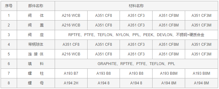 Y型三通球閥零件材料: