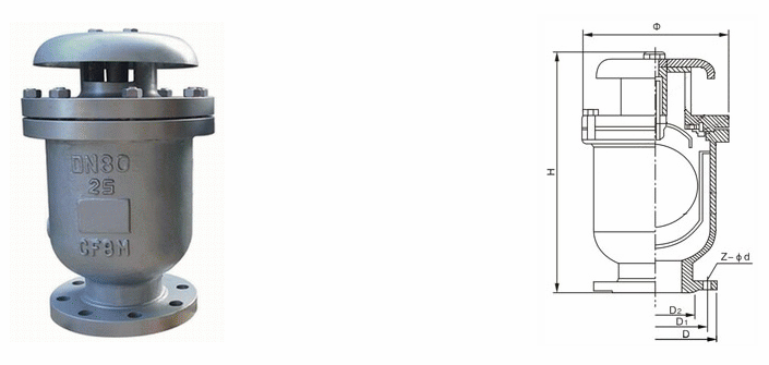 不銹鋼快速進排氣閥是一種由閥體、浮體、升降罩、大孔和小孔密封組件、閥蓋、排氣罩以及浮體罩和防護網(wǎng)等組成的給水管道復合式高速進排氣閥,其同時具備大、小進排氣孔,當管道空管充水時實現(xiàn)快速排氣,當管道內(nèi)產(chǎn)生負壓時又能快速進氣,且在工作壓力下可排出管道中集結(jié)的微量空氣,排盡氣后具有自動封水功能。本產(chǎn)品有帶防護網(wǎng)和不帶防護網(wǎng)兩種,如果安裝在地上時,應(yīng)在閥門頂部進排氣通道外側(cè)安裝金屬防護網(wǎng)。