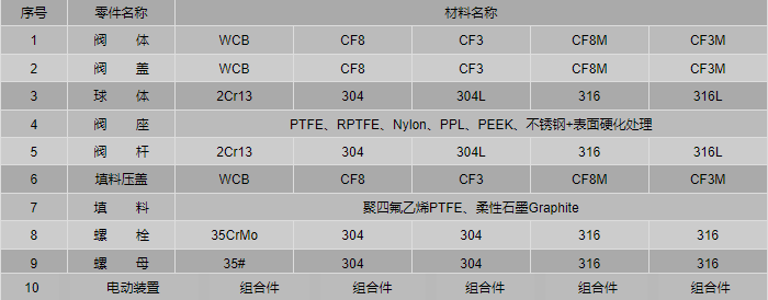 不銹鋼電動球閥零件材料: