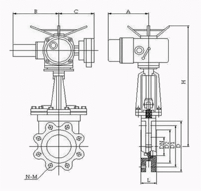 電動(dòng)陶瓷刀閘閥外形結(jié)構(gòu)圖: