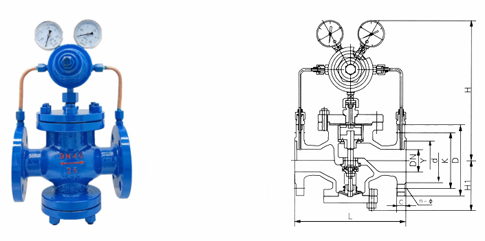 先導(dǎo)活塞式氣體減壓閥外形結(jié)構(gòu)圖: