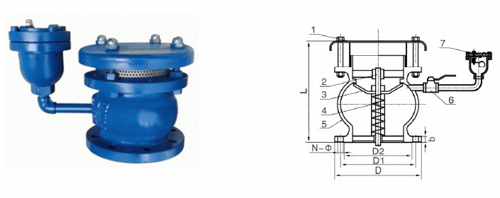 注氣微排閥在突然停泵或關(guān)閉閥門或人為排水時,管內(nèi)某些位置處的水柱可能產(chǎn)生分離,管內(nèi)出現(xiàn)真空(負(fù)壓),在負(fù)壓值達(dá)到-1kPa~3kPa時,外界壓強(qiáng)大于內(nèi)部壓強(qiáng),吸氣閥內(nèi)部彈簧被外界空氣壓強(qiáng)和閥瓣自重擠壓,彈簧上的閥瓣下移,吸氣口打開,空氣通過負(fù)壓吸氣閥的高速吸氣孔口從四周快速進(jìn)入,使管內(nèi)負(fù)壓降到很低,以保證管件和密封接口的安全性。
