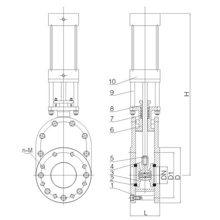 陶瓷平行雙閘板閥外形結(jié)構(gòu)圖: