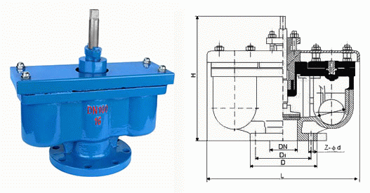當(dāng)需要排出管道內(nèi)的氣體時(shí),應(yīng)逆時(shí)針方向旋轉(zhuǎn)閥桿,使其閥桿連同閥門上升,使管道內(nèi)的空氣在水的壓強(qiáng)作用下進(jìn)入體腔內(nèi),并從排氣嘴排出,隨之管道內(nèi)的水充滿體腔內(nèi),使浮球在水的浮力作用下,向上移動(dòng)將排氣嘴堵塞,達(dá)到自行密封,管道在正常行中,水中的空氣在壓強(qiáng)的作用下,不斷排入排氣閥的體腔上部,迫使浮球下降,離開原來密封位置,這時(shí)空氣又從排氣嘴排出,隨之,浮球又恢復(fù)到原來位置自密封,因此,排氣閥在正常工作中閥門始終是開著的,浮球不斷重復(fù)上述動(dòng)作,空氣不斷排出,當(dāng)需要檢修或清掃體腔時(shí),應(yīng)將閥門關(guān)閉。本排氣閥,順時(shí)針旋轉(zhuǎn)閥桿時(shí)為關(guān)閉。