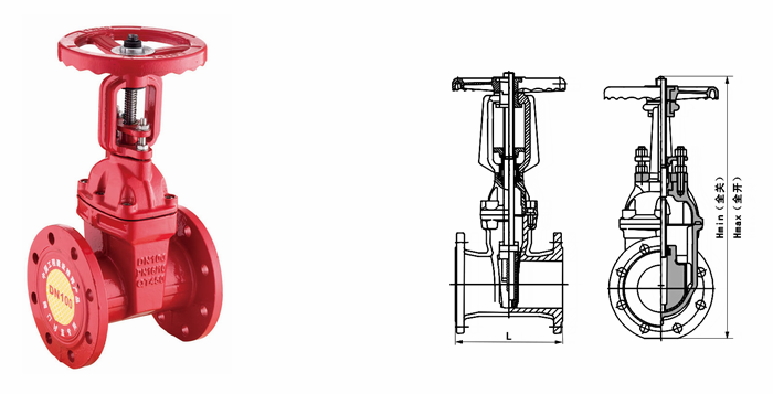 消防明桿閘閥外形結(jié)構(gòu)圖: