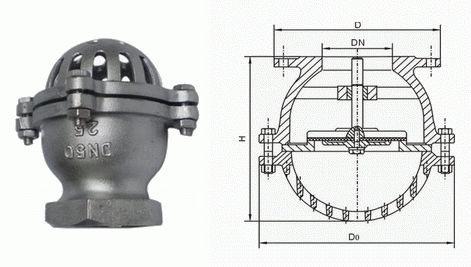 底閥由閥體,閥瓣,閥蓋,襯套,密封圈等零件組成,詳見下圖水源的水從閥蓋進入閥體。在流體的壓力作用下,閥瓣打開水,當(dāng)示停后出口管內(nèi)的壓力將閥瓣迅速關(guān)閉,液體將不會倒回水源,起到了即暢通抽水又節(jié)約水能損失的作用。