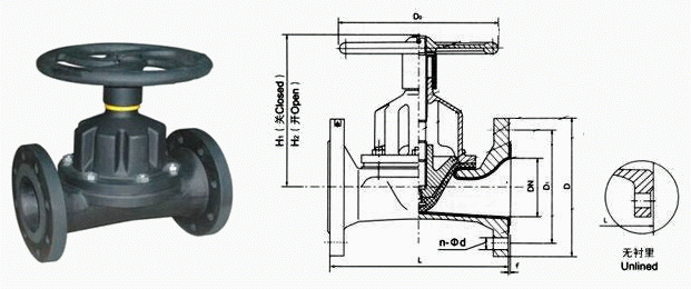 直通式襯膠隔膜閥外形結(jié)構(gòu)圖: