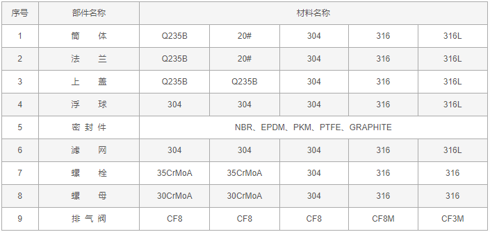 導(dǎo)閥式消氣過濾器零件材料:
