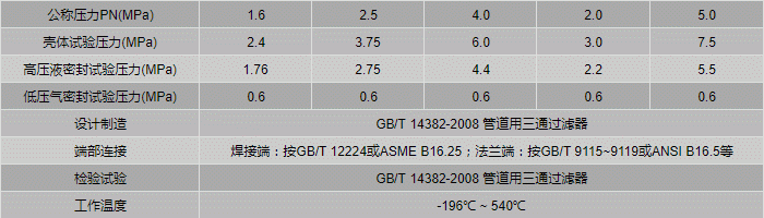 承插焊Y型過濾器主要由主管、斜管、法蘭和法蘭蓋、緊固件及過濾網(wǎng)、排污絲堵等零部件組成,其制造要求、試驗(yàn)方法及檢驗(yàn)規(guī)則等都是按《管道用三通過濾器》GB/T 14382-2008標(biāo)準(zhǔn)執(zhí)行,該Y型過濾器是用無縫鋼管由主管和斜管按45度角通過焊接工藝焊制而成的,它通過對(duì)焊、承插焊、螺紋、法蘭等方式與管道連接,斜管內(nèi)置有相應(yīng)過濾面積和過濾精度的過濾網(wǎng),本過濾器過濾網(wǎng)一般采用不銹鋼濾筒和絲網(wǎng)雙層結(jié)構(gòu),以30目/英寸作為標(biāo)準(zhǔn)網(wǎng),可攔截≥614μm粒徑的固體顆粒,也可根據(jù)客戶工況要求定做過濾網(wǎng)。