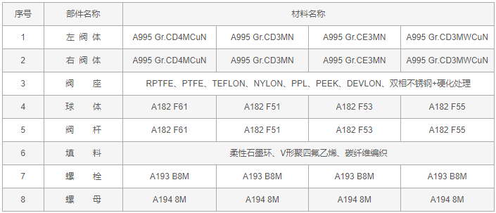 美標(biāo)雙相鋼球閥是一種主體采用ASTM A995標(biāo)準(zhǔn)中4A(CD3MN)、5A(CE3MN)、6A(CD3MWCuN)、1B(CD4MCuN)或ASTM A182規(guī)范中F51(S31803)、F53(S32750)、F55(S32760)、F61(S32550)、F60(S32205)以及SAF系列中SAF2205、SAF2507等雙相鋼材料鑄造或鍛造而成的球閥,該種材質(zhì)綜合了鐵素體和奧氏體不銹鋼的優(yōu)點,具有超塑性、高韌性、高強度等特點。在抗腐蝕方面,本產(chǎn)品特適合介質(zhì)環(huán)境比較惡劣(如海水,氯離子含量較高及含硫化物)的條件下使用。