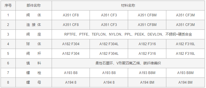法蘭美標(biāo)球閥零件材料:
