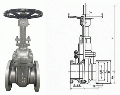 美標(biāo)明桿閘閥外形結(jié)構(gòu)圖:
