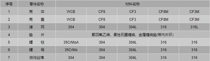 管道法蘭過濾器零件材料:
