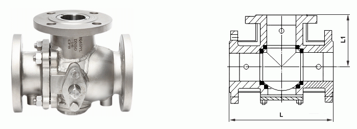 不銹鋼三通保溫球閥閥體的外側(cè)壁焊接有保溫夾套層,保溫夾套與閥體之間設(shè)有空腔,形成保溫加熱流體層,保溫夾套層側(cè)面的兩側(cè)分別焊接有進液口和排液口,保溫管道內(nèi)的高溫介質(zhì)可以直接通過進液口進入到保溫夾套與閥體之間的空腔內(nèi)對球閥進行充分的保溫加熱,以防止三通球閥內(nèi)的介質(zhì)結(jié)焦或結(jié)晶。本產(chǎn)品按流道結(jié)構(gòu)形式的不同分為L型、T型、Y型三種,以適應(yīng)不同管路系統(tǒng)的需求。