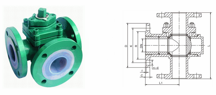 襯氟T型三通球閥外形結(jié)構(gòu)圖: