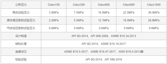 美標(biāo)法蘭球閥屬于浮動(dòng)球球閥,其設(shè)計(jì)制造標(biāo)準(zhǔn)是按《API 6D-2014管線和管道閥門規(guī)范》、《API 608-2008法蘭、螺紋和焊連接的金屬球閥》、《ASME B16.34-2013法蘭、螺紋和焊接端連接的閥門》要求,連接法蘭尺寸采用ASME B16.5、ASME B16.47、ANSI B16.5等。該閥按照密封材質(zhì)的不同,其有軟密封和硬密封兩種,軟密封一般采用聚醚醚酮(PEEK)、對位聚苯(PPL)、聚四氟乙烯(PTFE)及尼龍等作為密封圈材料,硬密封則使用合金鋼或不銹鋼堆焊硬質(zhì)合金等,閥體材質(zhì)可選用碳鋼、合金鋼、不銹鋼及其他特種材料。
