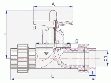 活接式塑料隔膜閥外形結(jié)構(gòu)圖: