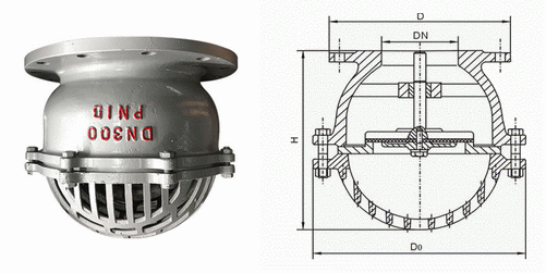 升降式底閥是一種節(jié)約能源的閥,一般安裝在水泵水下吸管的底端限制水泵管內(nèi)液體返回水源,起著只進(jìn)不出的功能。閥蓋上有很多個進(jìn)水口和加強(qiáng)筋起到了不易堵塞,主要應(yīng)用在抽水的管路上水道和支承的作用。安裝在水泵底部防止水的倒流,連接方式有法蘭連接和螺紋連接。